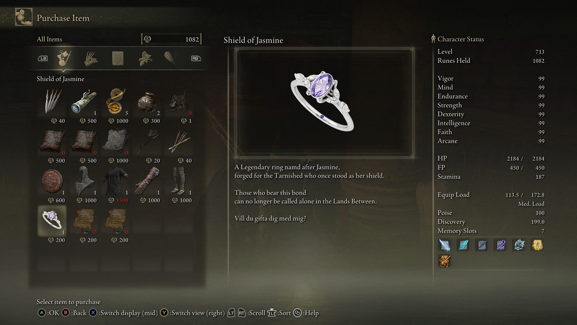 A lightweight Elden Ring mod prototype created for a proposal. I replaced an existing in-game item with a custom “Shield of Jasmine” ring, updating its presentation (name, description, icon) while keeping it consistent with the game’s tone.